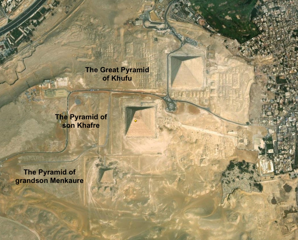 Each of these spectacular structures served as the final resting place of a king of the 4th Dynasty. The “Great” Pyramid, the oldest and largest of the three, was built for the pharaoh Khufu. The other two were the tombs for his son Khafre and grandson Menkaure.